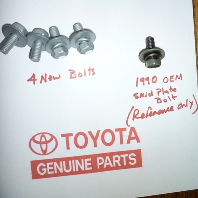 Toyota 4runner skid plate bolts. I recently bought a 2005 sr5. While i have heard of this issue since purchasing my 1999 4r 8 years ago i never had any experience with it as i have always changed my oil myself dropping the skids every time and never had an issue at all. Body interior fuel genuine toyota part lower cover bolt 90109 06330 9010906330 bolt.